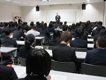 4/9(月)本校8階視聴覚室において、平成30年度新入生講話が行われました。教務課長より授業・特別活動について、生徒課長より生徒心得・スマートフォンの取り扱い等についての説明がありました。その後6階アリーナにおいて、平成30年度対面式および部紹介が行われました。生徒会代表歓迎あいさつでは、Ⅲ部生徒会長より歓迎の言葉が新入生に贈られました。また、本校は霞城セントラルビル内にあることから本校独自のマナーについてのプレゼンテーションがⅠ部生徒会により行われました。最後に部紹介があり、各部・サークルが新入部員募集を呼び掛けました。