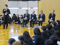 3/23(金)本校8階視聴覚室で、平成29年度終業式・離任式が行なわれました。終業式では浅黄校長より、体験と学習の積み重ねの大切さのお話があり、その後功労賞と精勤賞の学校表彰が行なわれました。今年度離任される10名の教職員の方々の離任式が最後に行われました。